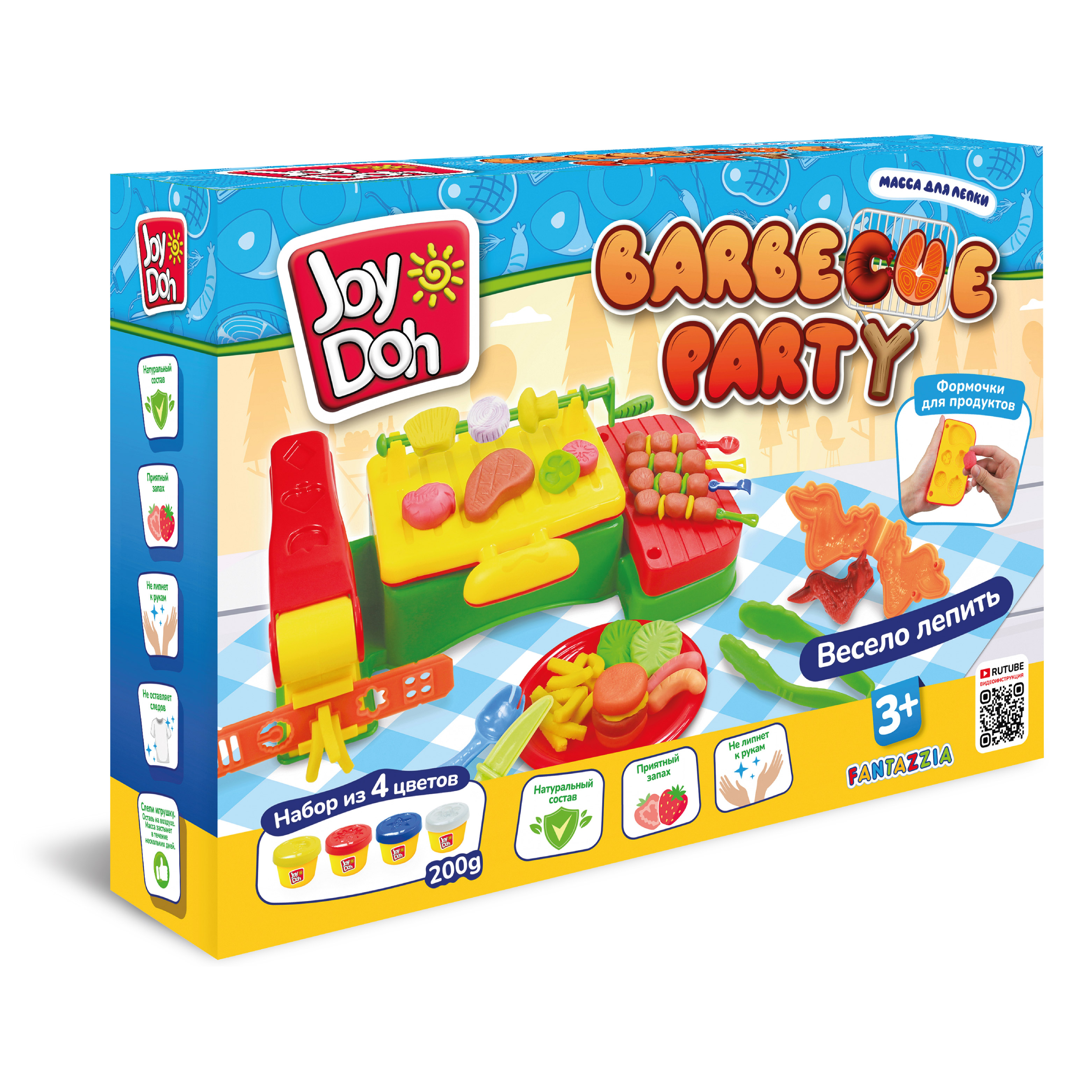 Масса для лепки Joy Doh набор Barbecue Party - Барбекю гриль, 16 аксессуаров, 4 баночки с тестом,